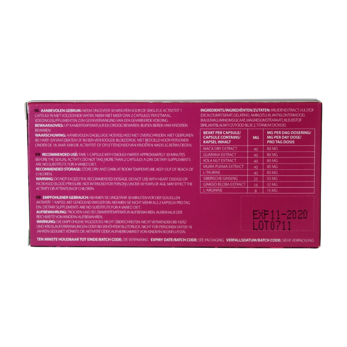 Neem één capsule 1 tot 2 uur voor de seksuele activiteit in. Gebruik niet meer dan 2 capsules per etmaal.